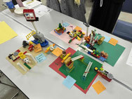 まずは、レゴ®ブロックに慣れるための練習ワークに取り組み、その後本題へ。「日本の採用の問題」「次世代へのメッセージ」の2つのテーマについて、各自が、キャリアコンサルタントとしての考えを、レゴ®ブロックで作品として表現するワークを行いました。さらに、グループ内で、完成した作品を紹介し合い、お互いに質問を交わすことで、思考がさらに深まる体験を共有しました。